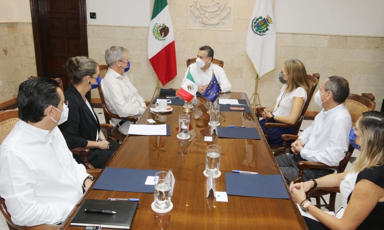 Acompañado de Marie Augoy Attachée, de la Delegación de la Unión Europea en México; y la participación de los directores Edgardo Bolio Arceo (IMPLAN), Martha Elena Gómez Nechar (Unidad de Contraloría), Alejandra Bolio Rojas (Unidad de Desarrollo Sustentable) y Miguel Morales Cervera, subdirector de Desarrollo Económico, se presentaron los proyectos que tiene el Municipio en esta materia.