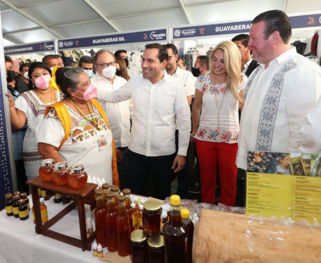 Junto con la gente, Vila Dosal visitó cada uno de los espacios, donde se cuenta con productos como salsas, guayaberas y blusas típicas, artesanías, zapatos, hamacas, repostería, joyería, condimentos, miel y sus derivados, bolsos y licores, entre otras cosas.