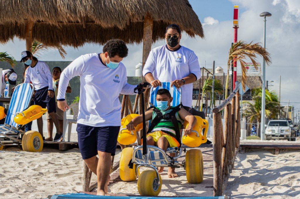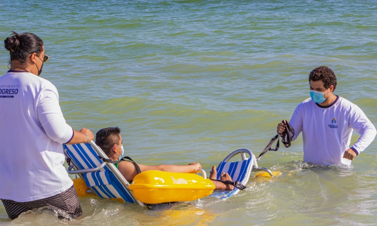 Progreso, 27 de mayo. – El H. Ayuntamiento que preside el alcalde Julián Zacarías Curi, a través del DIF Municipal, ha atendido a más de 30 usuarios en las instalaciones de la Playa Incluyente, la cual se encuentra ubicada en el corazón del Malecón Tradicional.