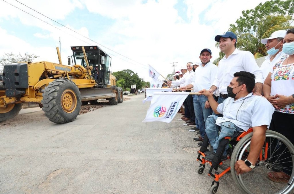 -En gira de trabajo por Umán, Vila Dosal dio el banderazo de inicio para la rehabilitación de 3.1 kilómetros de tramo carretero hacia la comisaria de Tebec.