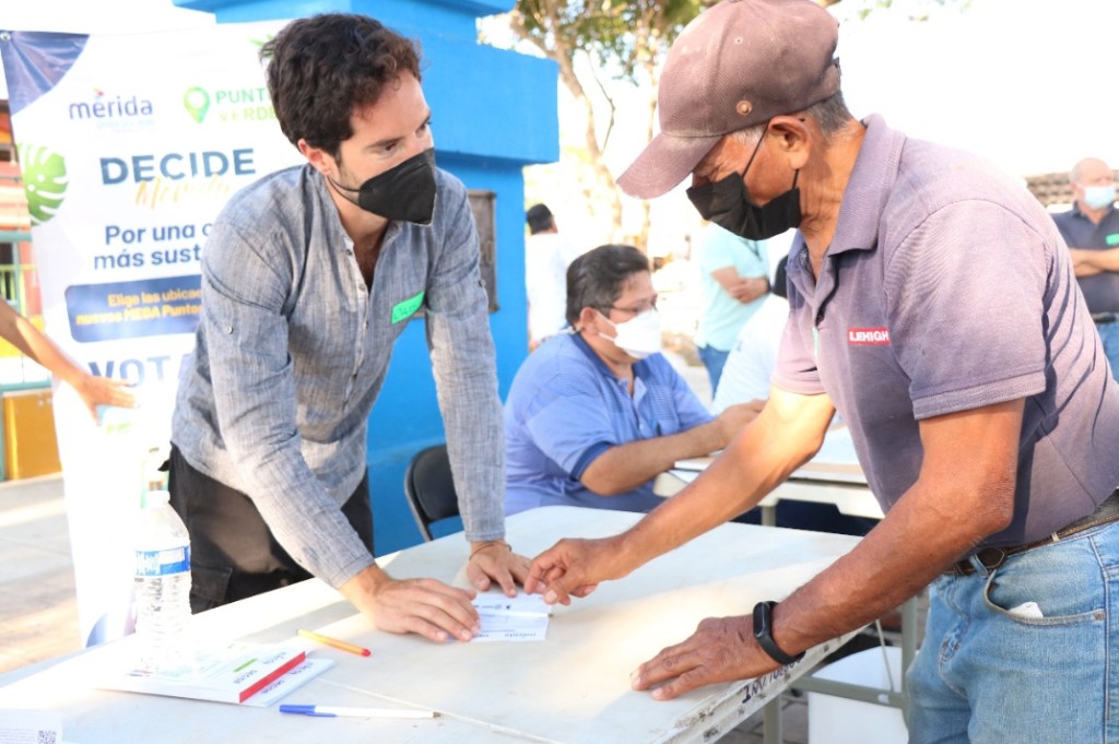 Expuso que los tres mega puntos verdes que se instalarán este 2022 estarán, de acuerdo con el número de votos, en las siguientes colonias: Pensiones (468), Yucalpetén (324) y Circuito Colonias Oriente (290). Mientras que para el período 2023-2024 se instalarán en los siguientes puntos: Fraccionamiento del Parque (276), Mulsay (266), carretera Mérida-Cholul (216), San Ángelo (209) y Pinos (176).