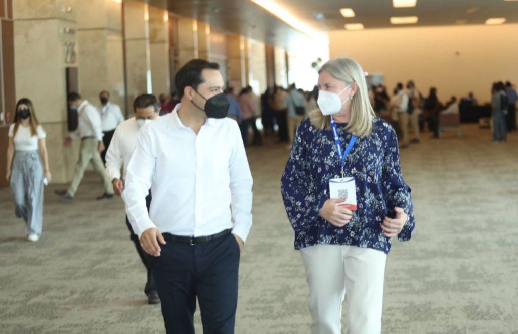 Durante el encuentro que se celebra en el Centro Internacional de Congresos (CIC) Vila Dosal recordó que mientras a nivel nacional la economía está creciendo al 5.1 por ciento, aquí en Yucatán estamos creciendo al 8.1 por ciento, y si bien perdimos 25,000 empleos durante la pandemia, se recuperaron 42,000 empleos, ya traemos 16,000 empleos más de los que teníamos antes de la pandemia.
