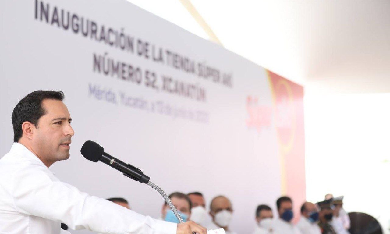 Mérida, Yucatán, 13 de junio de 2022.- Empresas yucatecas continúan expandiéndose, generando inversiones y más empleos para las familias de comisarías de Mérida y el interior del estado, resultado de la dinámica económica de Yucatán y la confianza que genera en la iniciativa privada, y como muestra de ello, este día, el Gobernador Mauricio Vila Dosal inauguró una sucursal de la cadena de autoservicio Súper Akí, en la cual se invirtió 65 millones de pesos y se está creando más de 320 plazas laborales, entre directas e indirectas.