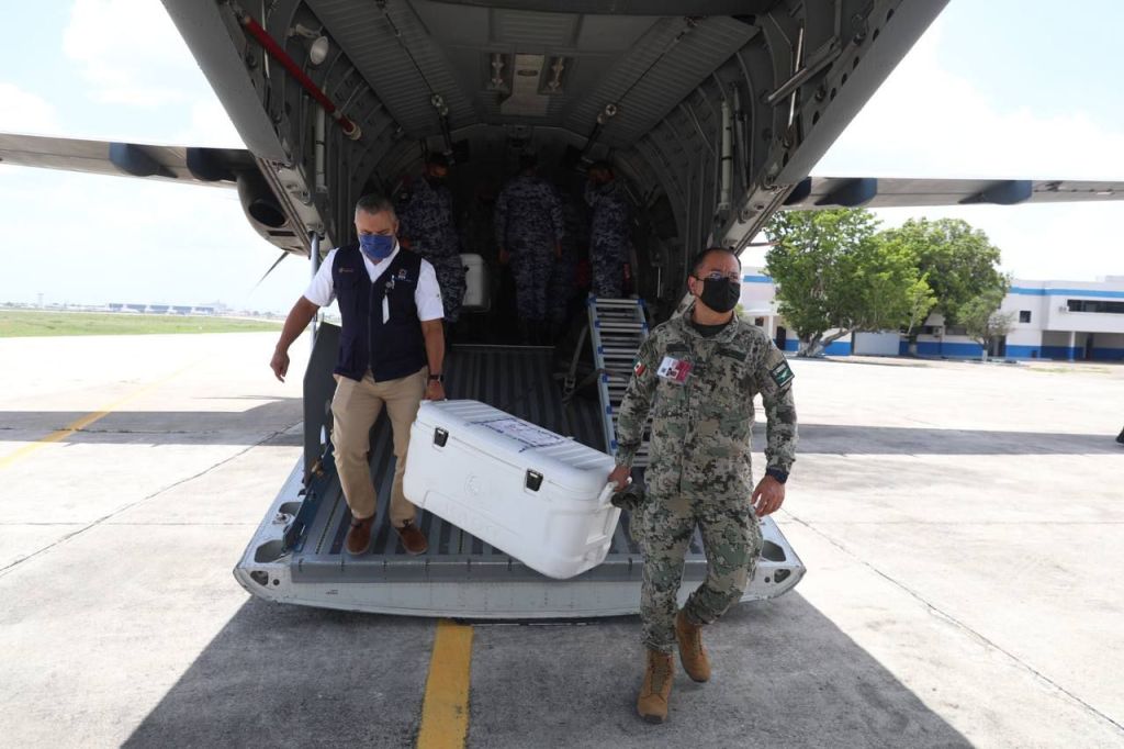 Por instrucción del Gobernador Mauricio Vila Dosal, el director de Prevención y Protección de la Salud de la SSY, Isaac Hernández Fuentes, acudió a la Base Aérea Militar (BAM) número 8, para supervisar la llegada de este nuevo cargamento, que arribó a bordo de una aeronave Spartan C-27J de la Fuerza Aérea Mexicana, matrícula 3205, proveniente de Ciudad de México, y tocó el territorio a las 14:10 horas.