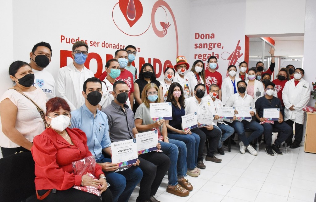 Mérida, Yucatán, 14 de junio de 2022.- En el Día Mundial del Donante de Sangre, la Secretaría de Salud de Yucatán (SSY) reconoció el altruismo de donadores que acudieron a la campaña 16 de la asociación Dr. Sonrisas, en el Centro Estatal de Transfusión Sanguínea (CETS), y a las casi 100 que han respondido a este llamado, en las otras ocho jornadas efectuadas en este marco.