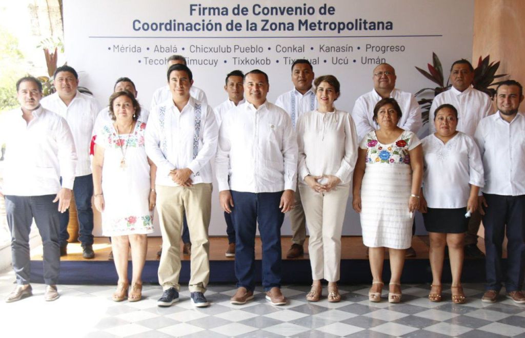 En el salón de Cabildo del Palacio Municipal de Mérida, presidieron esta firma las y los Alcaldes: María Judith del Socorro Aguayo Fuentes, secretaria Municipal de Abalá, en representación de la Presidenta Municipal, María Lorenzana Ayala López; Amílcar Abricel Reyes Marín, Presidente Municipal de Chicxulub Pueblo; Edwin José Bojórquez Ramírez, Presidente Municipal de Kanasín; Julián Zacarías Curi, Presidente Municipal de Progreso; José Joel Achach Díaz, Presidente Municipal de Tecoh; Marsi Rosana Ceh Teh, Presidenta Municipal de Timucuy; Fabián Andrés de Jesús Rivera Frías, Presidente Municipal de Tixkokob; Víctor René Lara Cauich, Presidente Municipal de Tixpéual; Gaspar Ariel Pinto Ojeda, Presidente Municipal de Ucú; y Gaspar Ventura Cisneros Polanco, Presidente Municipal de Umán.