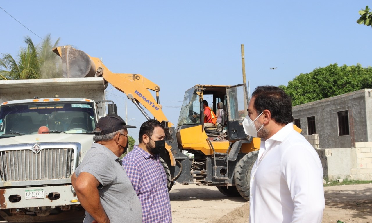 PROGRESO, 16 de junio del 2022. – El alcalde Julián Zacarías Curi acudió a supervisar el inicio de trabajos de pavimentación que se llevarán a cabo en la colonia Miguel Hidalgo de Chicxulub Puerto.