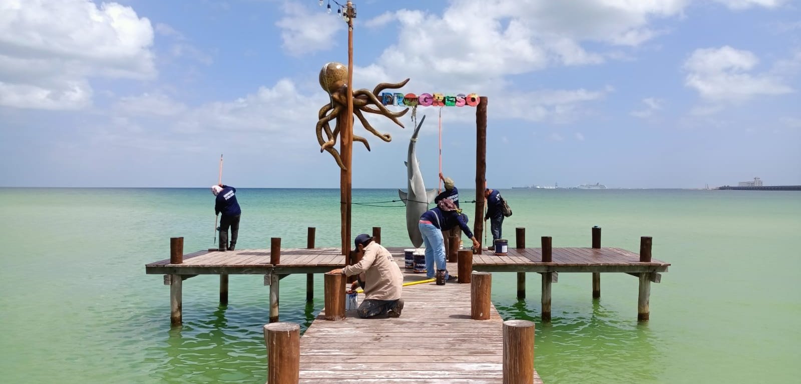 PROGRESO, 17 de junio. – El H. Ayuntamiento que preside el alcalde Julián Zacarías Curi, a través de la Dirección de Servicios Públicos y Ecología, realizó trabajos de mantenimiento en el muelle de “La Pescadora”, ubicado en el Malecón Internacional; así como también en el de Chicxulub Puerto.