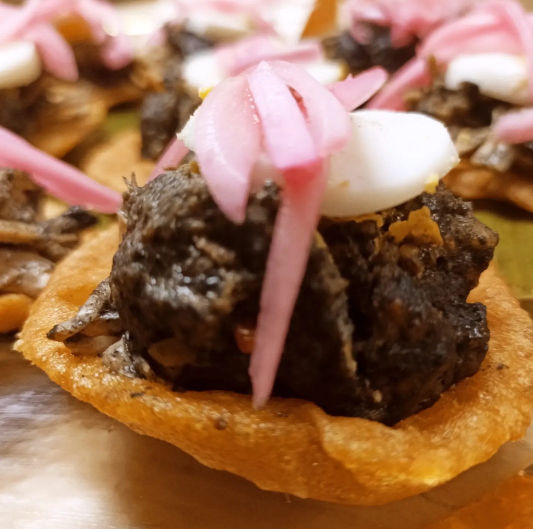 “Después de la ponencia, todos degustaron lo que preparamos y fue impresionante escucharlos decir que fue una explosión de sabores lo que probaron”, relata Delfina, “preparamos poolcanes, brazo de reyna, salbut de relleno negro, cochinita, tostadas de sikil pak y, como algo dulce, mazapán de semilla de calabaza”.