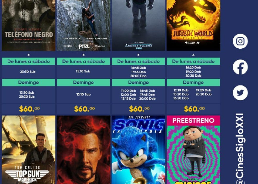 Esta es la cartelera de los nuevos @CinesSigloXXI