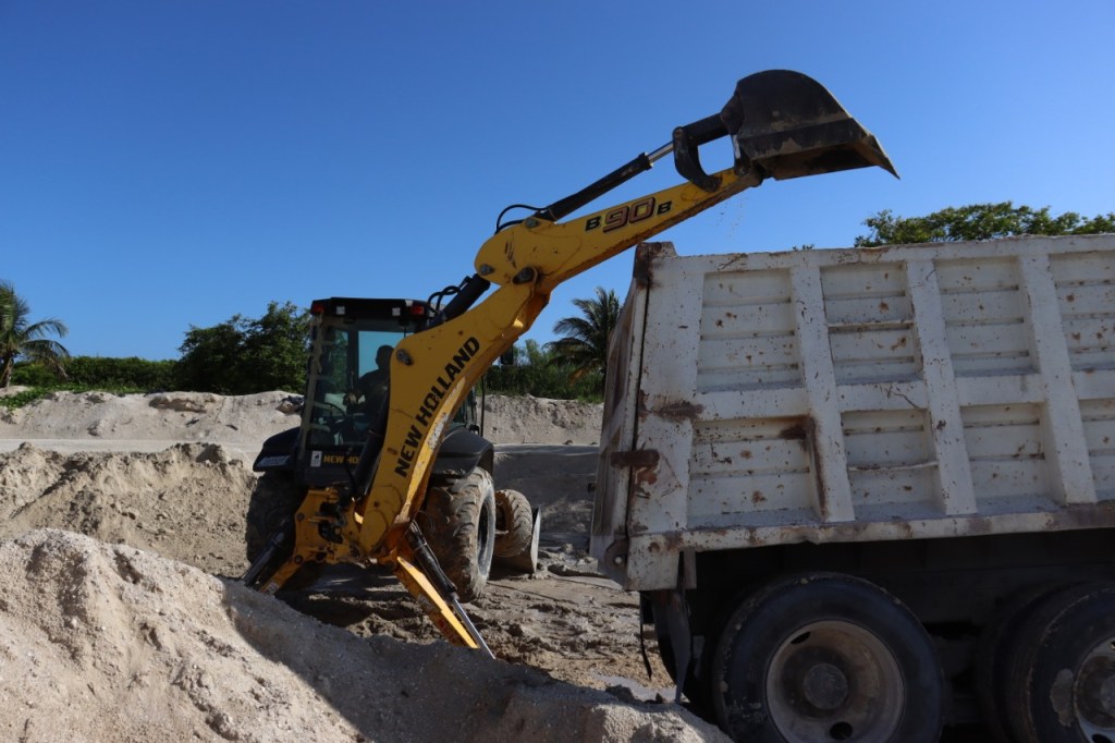 Entre los trabajos que ahí se realizan se encuentra el retiro de arena de la tartina, material que se está transportando al refugio pesquero “La Caleta”, el cual se encuentra en el periférico que conduce al Puerto de Abrigo de Yucalpetén.