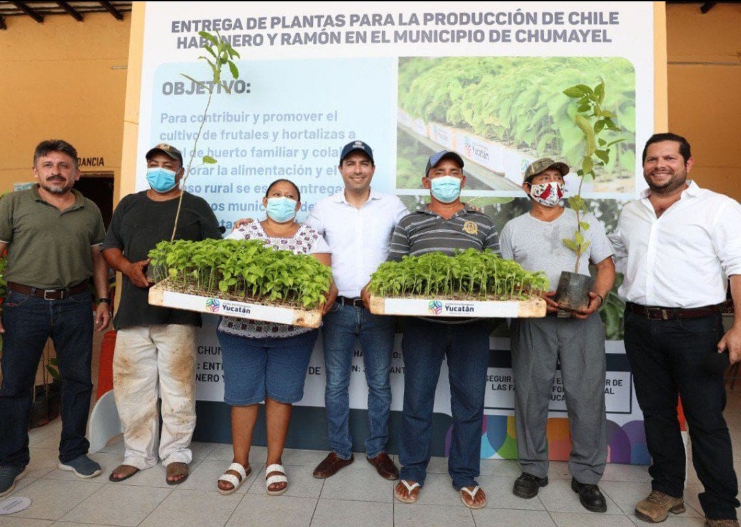 Como parte de su actividad en dicha localidad, el Gobernador, acompañado del titular de la Secretaría de Desarrollo Rural (Seder), Jorge Díaz Loeza, dio seguimiento a la entrega de un total de 45 mil plantas de chile habanero en la entidad. En Chumayel repartieron mil plantas para fortalecer los huertos familiares y contribuir a mejorar la alimentación en los hogares de las comunidades.