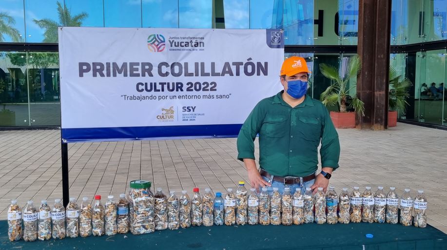 Mérida, Yucatán, a 27 de junio de 2022. Las 12,900 colillas de cigarro que fueron recolectadas en los alrededores del Centro de Convenciones Yucatán Siglo XXI, que administra Cultur, como una manera de coadyuvar para el saneamiento ambiental, serán usadas por una artista yucateca que se dedica a hacer obras de arte con esos residuos.