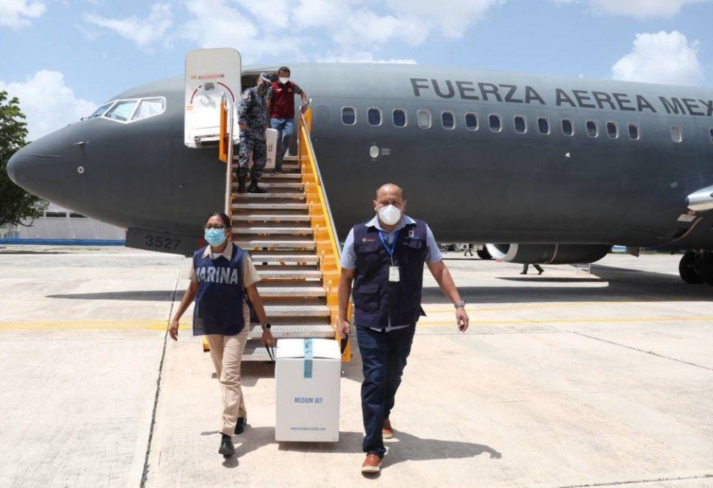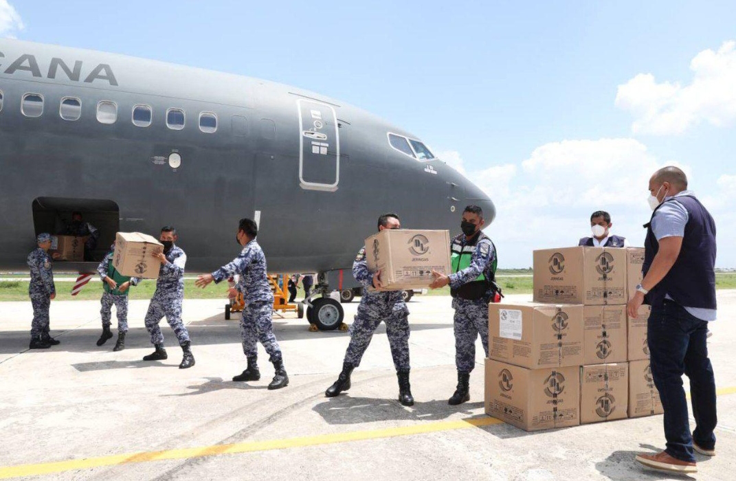 Por instrucción del Gobernador Mauricio Vila Dosal, el responsable Estatal de Vacunación Universal de la SSY, Alejandro Díaz Sánchez acudió a la Base Aérea Militar (BAM) Número 8 para supervisar la llegada de este cargamento, que tocó territorio a las 13:51 horas, a bordo de una aeronave Boeing de la Fuerza Aérea Mexicana, matrícula 3527, proveniente de la Ciudad de México.