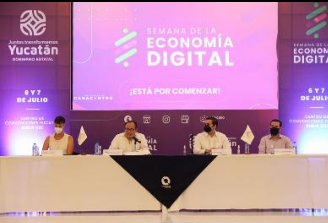 Mérida, Yucatán, 6 de julio de 2022.- Con la finalidad de impulsar la transformación digital de los negocios locales, se inauguró la Semana de la Economía Digital, que organizan la Cámara Nacional de la Industria de la Transformación (Canacintra) Yucatán y la Secretaría de Fomento Económico y Trabajo (Sefoet).