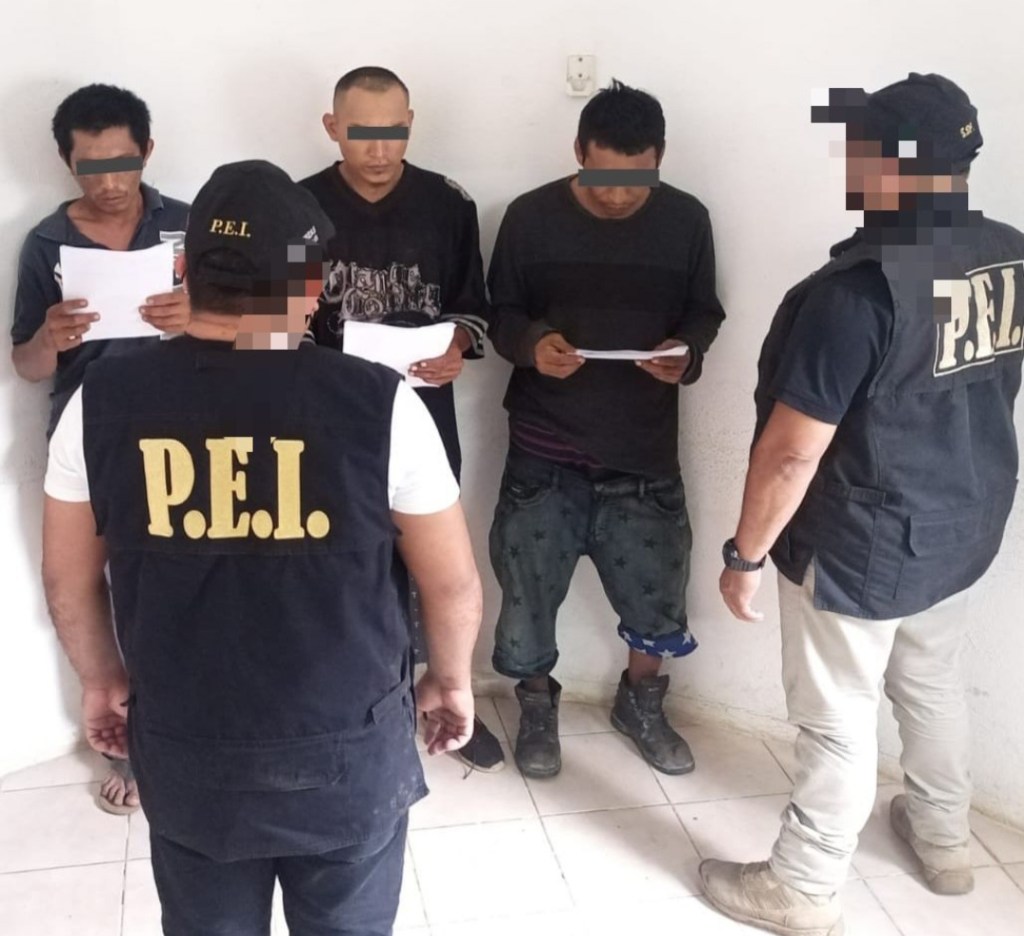 Por el homicidio de un hombre, cometido el pasado lunes en Ticul, hoy fueron capturados tres sujetos: Juan Diego C. P., Rodolfo Emanuel R. F. y Oscar Ismael U. K.