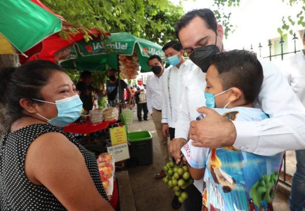 Acompañado del titular de la SSY, Mauricio Sauri Vivas, y del director del nosocomio, Marco Antonio Cetina Cámara, el Gobernador también atendió los planteamientos de quienes laboran a las afueras del Hospital, ofreciendo antojitos, aguas frescas y frutas.