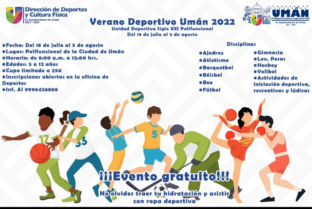 A partir del próximo lunes y hasta el 05 de agosto la Ciudad Capital de las Industrias llevará a cabo el Verano Deportivo Umán 2022, un amplio programa lúdico dirigido para las familias umanenses, pero principalmente para los más pequeños de la casa.