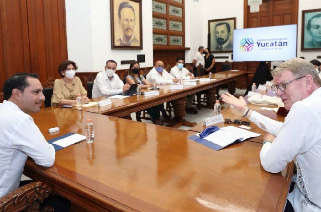 En el Salón de los Retratos de Palacio de Gobierno y acompañado de la titular de la Secretaría General de Gobierno (SGG), María Fritz Sierra, Vila Dosal y diplomático canadiense sostuvieron un encuentro, en donde dieron seguimiento a diversos proyectos que tienen Yucatán y Canadá en materia de generación de energías limpias, turismo, seguridad e inversiones.