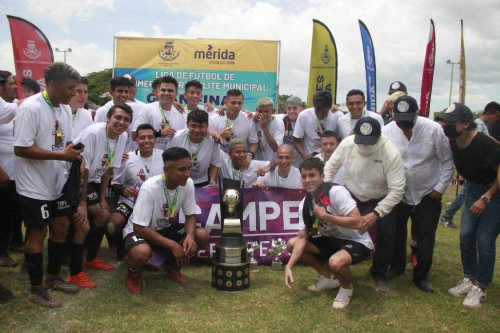 Al finalizar el encuentro, Jesús Aguilar y Aguilar, Secretario Técnico de Deportes del Ayuntamiento de Mérida, junto con Manuel Martín Medina, Presidente de la Asociación de Fútbol de Yucatán (Afeyac); y Jose Carlos Solis Cetz, titular de este circuito; entregó el trofeo al monarca.