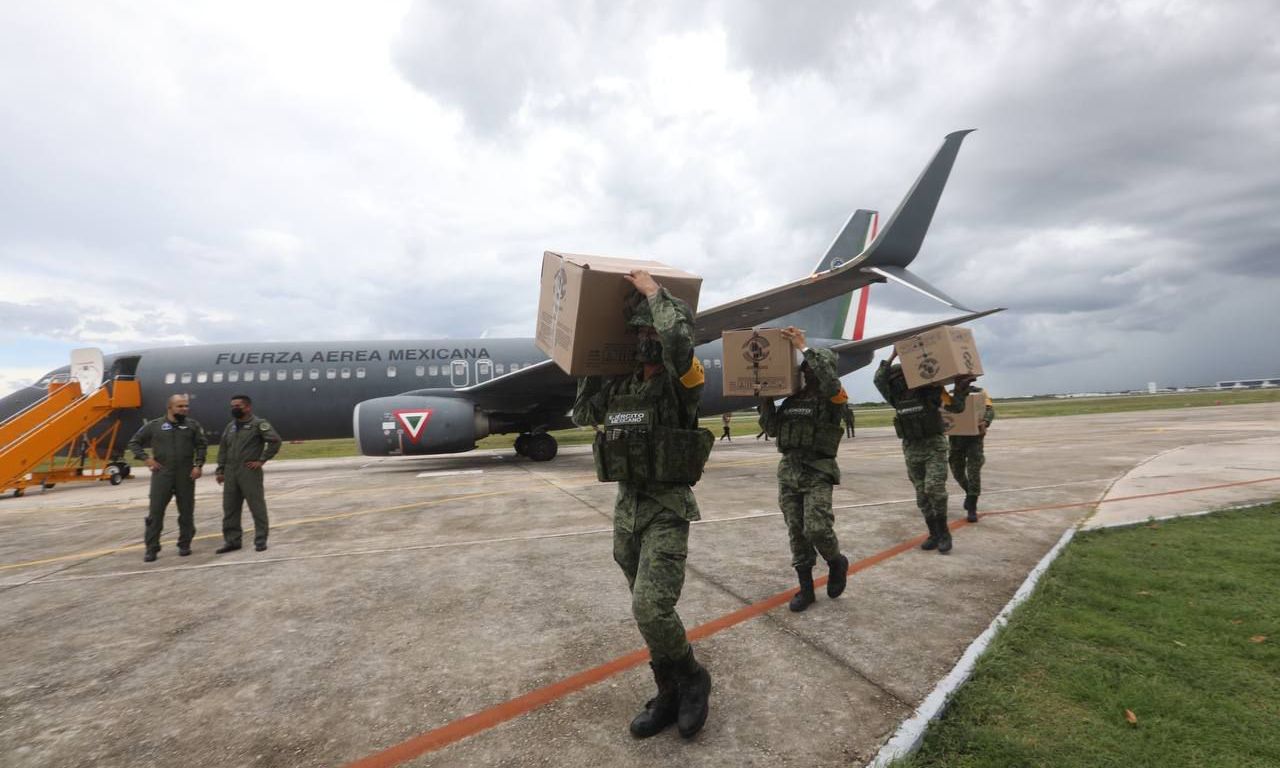 Por indicación del Gobernador Mauricio Vila Dosal, el responsable Estatal de Vacunación Universal de la SSY, Alejandro Díaz Sánchez, acudió a la Base Aérea Militar (BAM) Número 8 para supervisar la llegada de este lote, que tocó territorio estatal a las 15:35 horas, a bordo de una aeronave Boeing de la Fuerza Aérea Mexicana, matrícula 3528, proveniente de la Ciudad de México.