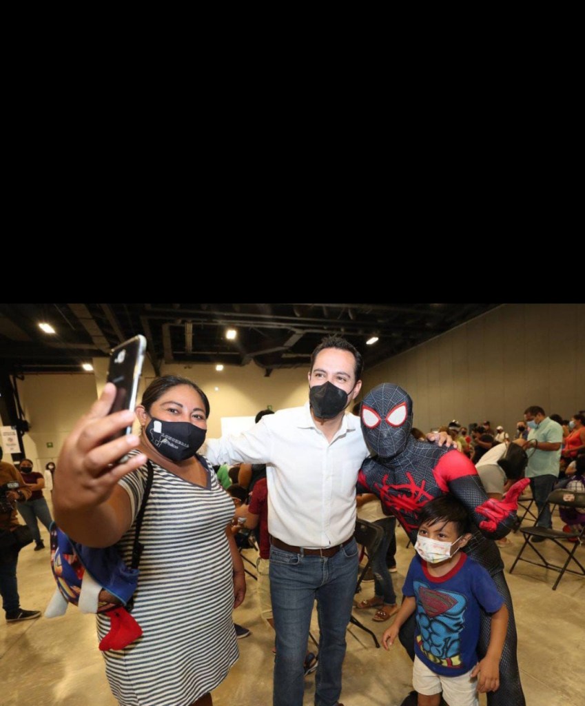 Vila Dosal llegó al módulo de vacunación instalada en el Centro de Convenciones Siglo XXI para supervisar que esta nueva etapa de vacunación en la capital yucateca se realice con normalidad y de manera amena para los infantes, la cual se lleva a cabo hasta el sábado 23 de este mes con el fin de continuar protegiendo la salud de la población, sobre todo, de los más pequeños.
