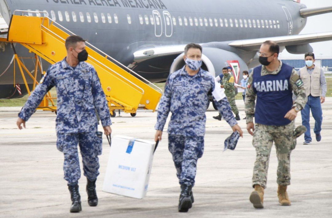 Por indicación del Gobernador Mauricio Vila Dosal, el responsable Estatal de Vacunación Universal de la SSY, Alejandro Díaz Sánchez, acudió a la Base Aérea Militar (BAM) Número 8 para supervisar la llegada de este lote, que tocó territorio estatal a las 13:30 horas, a bordo de una aeronave Boeing de la Fuerza Aérea Mexicana, matrícula 3527, proveniente de la Ciudad de México.