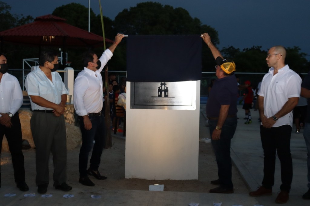 Después de la develación de la placa, el alcalde dio un recorrido por el parque acompañado de los regidores Karim Dib López y Mario Canto Briceño; así como también de Ricardo Jerez, titular de la Unidad de Comisarías, Israel de Jesús Cauich Canché, comisario de la localidad y Felipe Uc Puc, del comisariado ejidal.