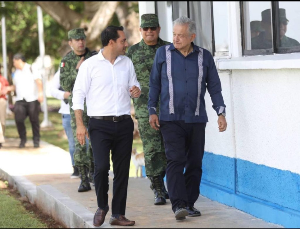En una visita más a Yucatán, el Gobernador recibió al jefe del Ejecutivo Federal, junto al director general del Instituto Nacional de Antropología e Historia (INAH), Diego Prieto Hernández; la Directora de Gestión Estratégica y Enlace Institucional del Fondo Nacional de Fomento al Turismo, Violeta Giorgina Abreu González; los directores General y de Obra de Grupo INDI, Manuel Muñozcano Cardoso y Luis Martínez Enríquez, respectivamente y el supervisor honorario del Tren Maya, Daniel Chávez Morán, con quienes revisó el progreso que, hasta este sábado, presenta el plan del Tren Maya.