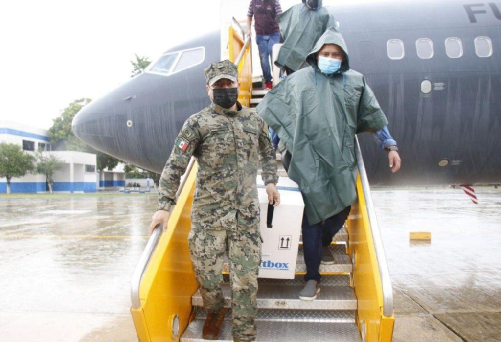 Como fue instrucción del Gobernador Mauricio Vila Dosal, el responsable Estatal de Vacunación Universal de la SSY, Alejandro Díaz Sánchez, acudió a la Base Aérea Militar (BAM) Número 8 para supervisar la llegada de estos lotes, que tocaron territorio estatal a las 16:22 horas, a bordo de una aeronave Boeing de la Fuerza Aérea Mexicana, matrícula 3527, proveniente de la Ciudad de México.