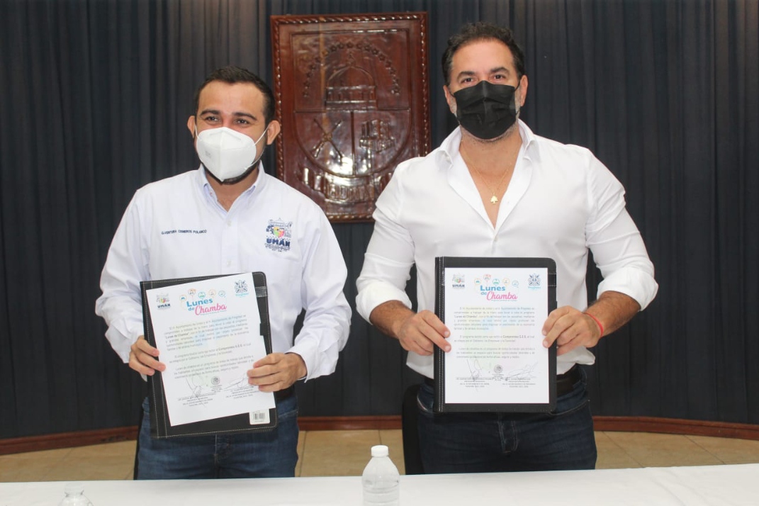 En una suma de voluntades para seguir transformando para bien a sus respectivos municipios, el alcalde de Progreso, Julián Zacarías Curi firmó un acuerdo con el que replicará el modelo Lunes de Chamba en este municipio costero, a fin de implementar una estrategia adicional, con miras a brindar mayores oportunidades de desarrollo laboral para los progreseños.