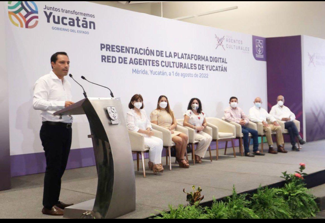 Mérida, Yucatán, 1 de agosto de 2022.- Para proyectar y difundir, en los niveles local, nacional e internacional, a impulsores del arte, la cultura y creatividad de toda la entidad, el Gobernador Mauricio Vila Dosal presentó la plataforma digital Red de Agentes Culturales de Yucatán, a través de la cual cualquier persona de Yucatán, México u otros países podrá contratar los servicios de músicos, bailarines, escritores, fotógrafos y demás artistas yucatecos, brindando mayor promoción a su trabajo y oportunidades laborales.