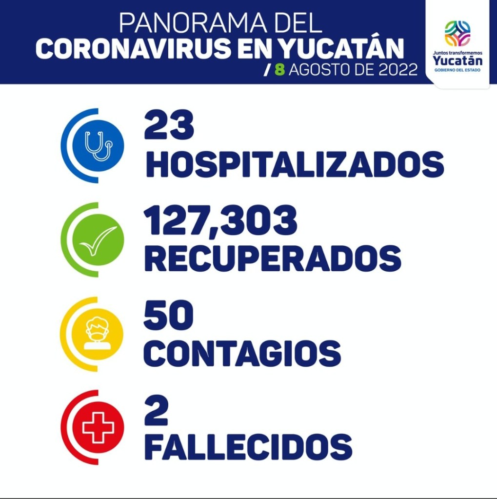Específicamente, en Mérida se han diagnosticado 87,534 personas contagiadas de Coronavirus (casos acumulados al 7 de agosto), que viven en: