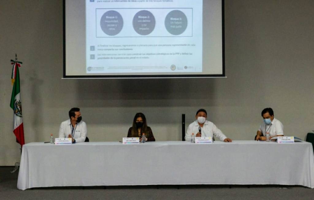 Representantes de la sociedad civil participaron en una reunión a la que convocó la Fiscalía General del Estado (FGE) para diseñar la Política de Persecución Penal (PPP) que, en colaboración con la Embajada de Estados Unidos, impulsa un nuevo modelo de gestión para mejorar la procuración de justicia, como ha instruido el Gobernador Mauricio Vila Dosal.