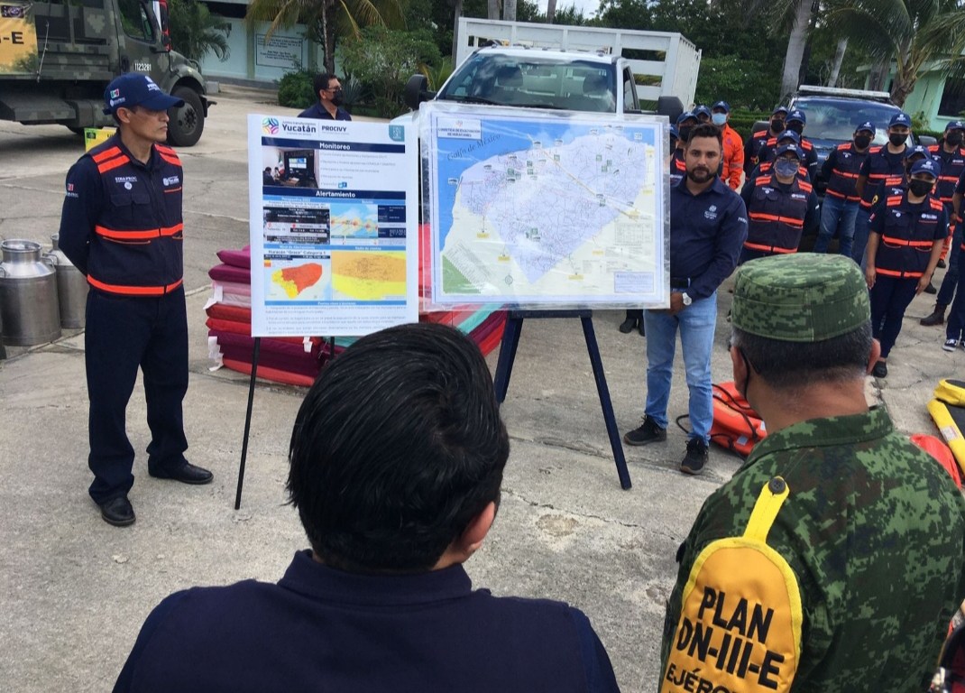 También, presentó una brigada de 30 elementos de la dependencia a su cargo y otras de Motul, Izamal, Ticul y Progreso, con parte del equipo de trabajo, y recordó el ajuste a 18 de los meteoros que podrían surgir en lo que resta de este periodo, de los cuales ya se formaron tres, así que faltan 15: siete serían tormentas y ocho, huracanes (cuatro de 1 a 2 en la escala de intensidad y los demás, mayores de 3).