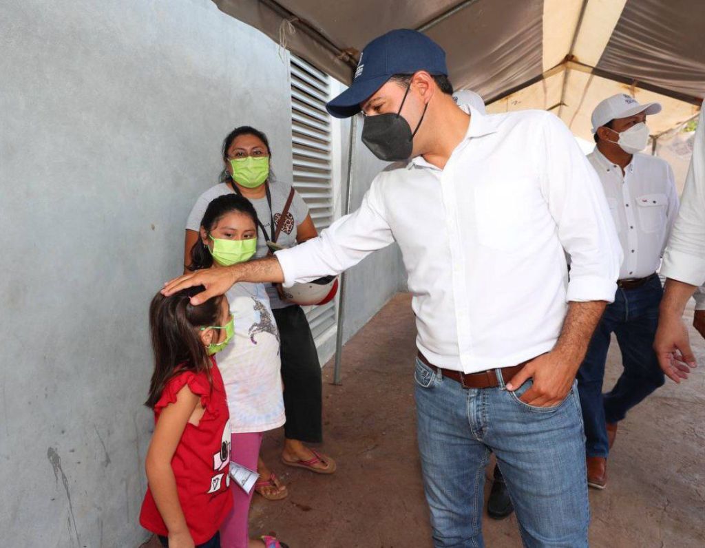 Acompañado del titular de la Secretaría de Salud (SSY), Mauricio Sauri Vivas, el Gobernador recorrió el espacio para constatar que este proceso se desarrolle correctamente y en orden; igual, aprovechó para saludar a los infantes y conversar con sus padres, acerca de la importancia de la vacunación y la tranquilidad que representa para ellos que sus hijos cuenten con esta protección.