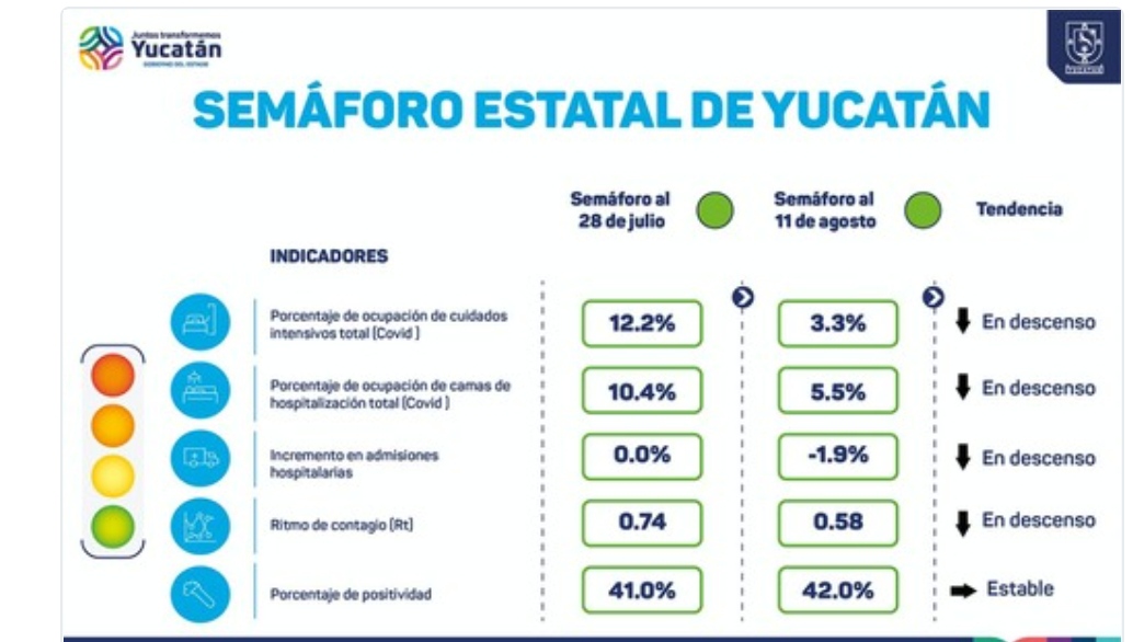 ESTOS SON LOS INDICADORES DEL SEMÁFORO ESTATAL DE YUCATÁN ESTE JUEVES 11 DE AGOSTO