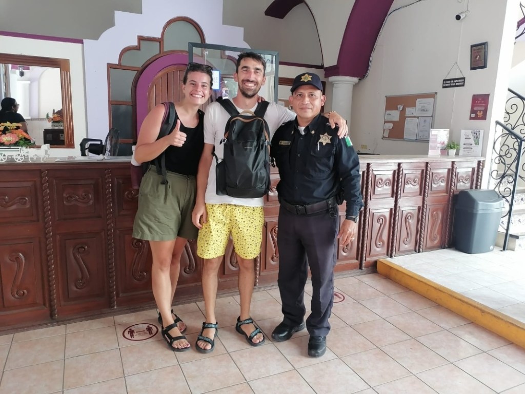 Hoy a las 12:45 horas el policía turístico Martín Koyoc Maldonado acudió a un hotel de la calle 65 entre 50 y 52 en donde estableció contacto con esta pareja.