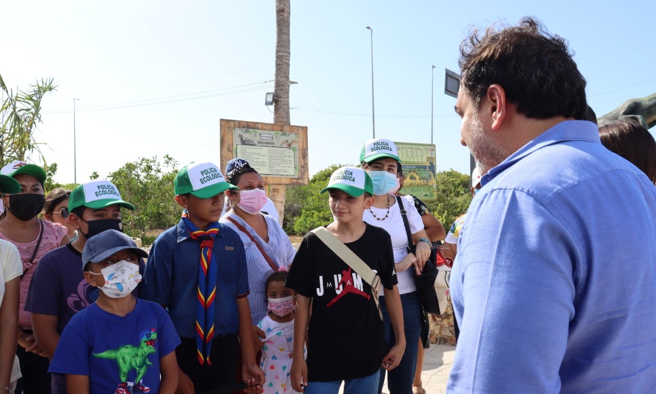 PROGRESO, 16 de agosto. – Niños, niñas y jóvenes de distintos institutos educativos, integrantes del Cabildo Infantil de Tekax, acudieron a conocer las instalaciones del parque temático “Sendero Jurásico”, y cuyo anfitrión del recorrido fue el alcalde Julián Zacarías Curi.