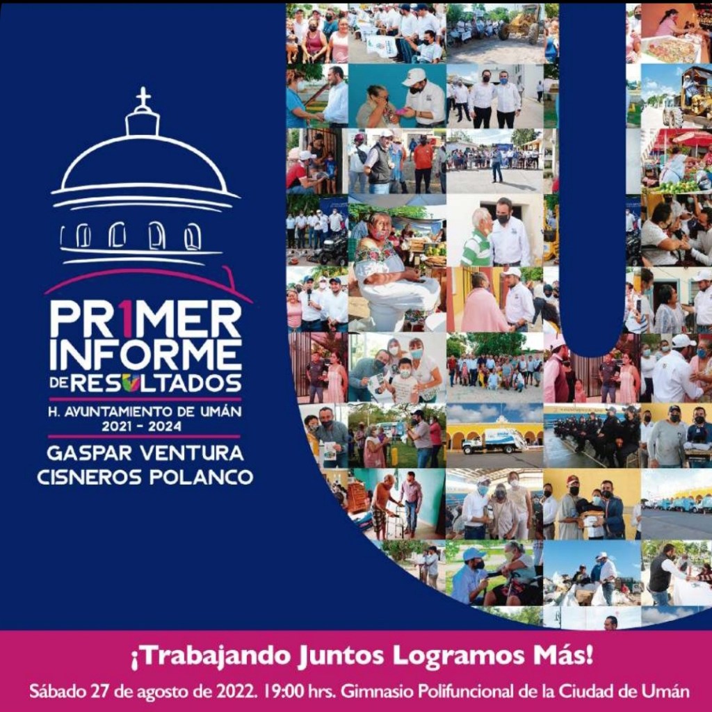 UmánPrimer informe de resultados del alcalde Gaspar Ventura Cisneros de Umán Ayuntamiento de Umán 2021-2024 Comparte esto: Enviar un enlace a un amigo por correo electrónico (Se abre en una ventana nueva) Correo electrónico Más Comparte en Facebook (Se abre en una ventana nueva) Facebook Compartir en X (Se abre en una ventana nueva) X Me gusta Cargando...