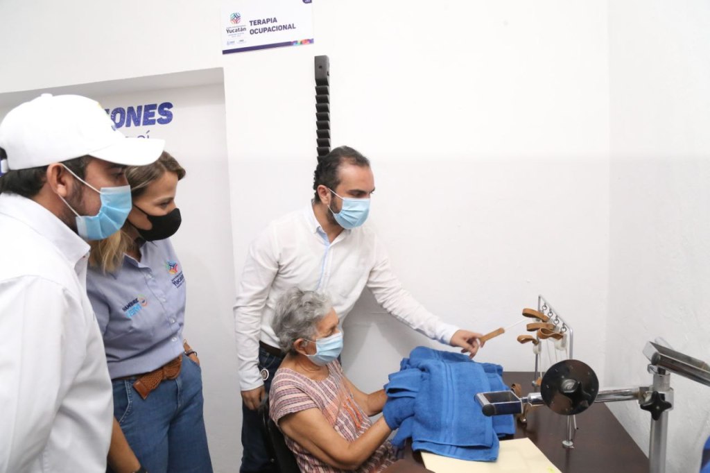 En presencia del alcalde anfitrión, Gaspar Ventura Cisneros Polanco, la directora del DIF, María Teresa Boehm Calero, encabezó el corte de listón y develación de la placa conmemorativa, para luego recorrer las instalaciones y presenciar la sesión de Ángel Elías Canul Balam, con cinco años de edad, quien hace unos meses, sufrió un derrame cerebral, que limitó la movilidad de sus brazos y piernas.