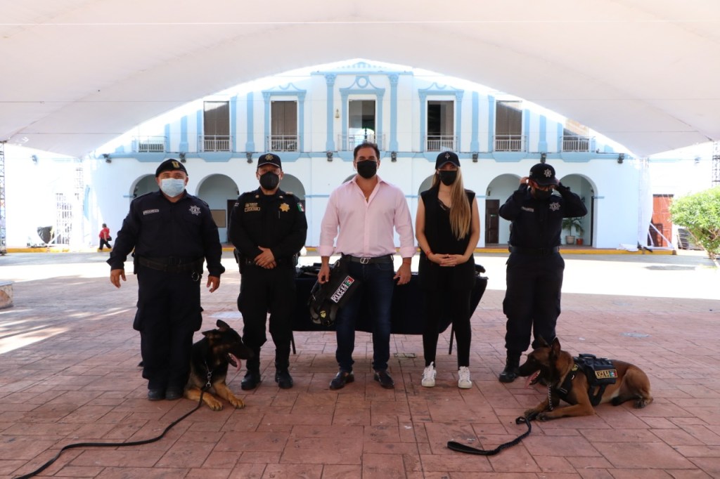 PROGRESO, 3 de septiembre. – El alcalde Julián Zacarías Curi realizo la entrega de equipamiento para los perros policía (K9) pertenecientes a la Dirección de Seguridad Pública y Tránsito.