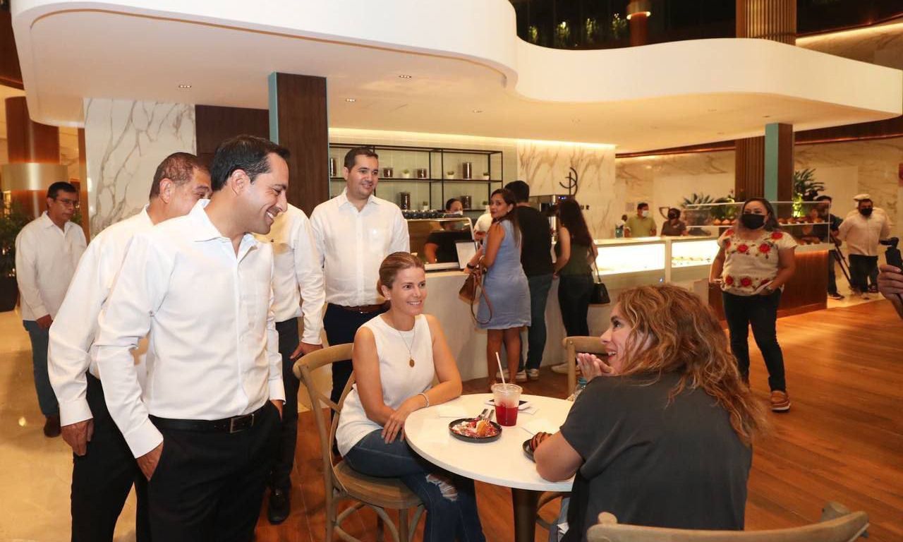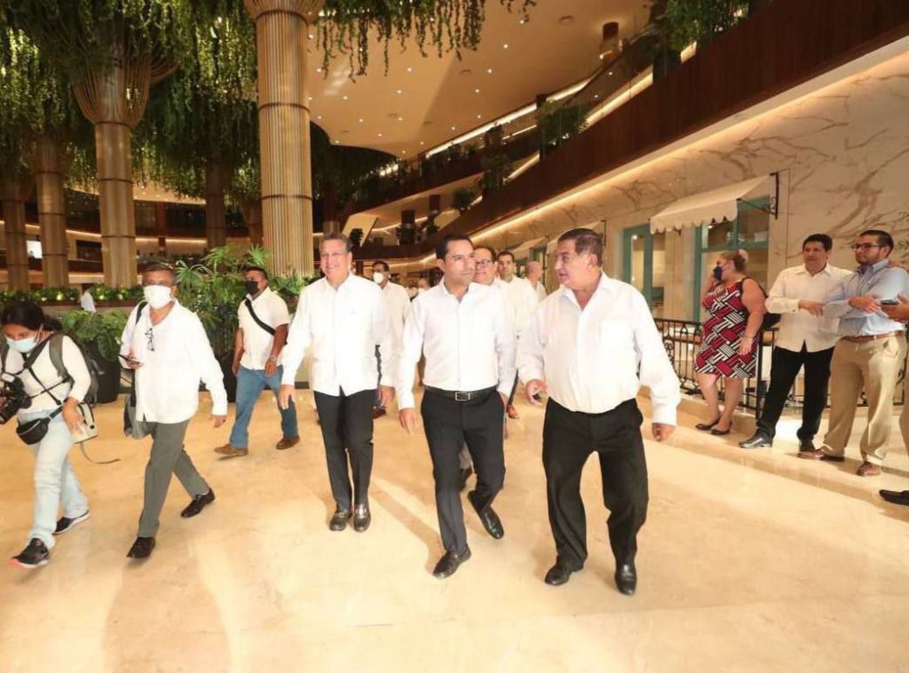 Con un diseño vanguardista y único en Mérida, Vila Dosal y el presidente de Grupo Palace Resorts, José Antonio Chapur Zahoul, recorrieron el edificio del Palace Resorts situado al norte de la ciudad y el cual cuenta con 12 oficinas corporativas, la plaza comercial y el Hotel Camino Real con 130 habitaciones.