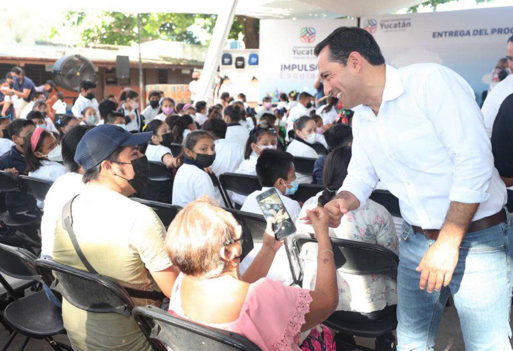 Mérida, Yucatán, 6 de septiembre de 2022.- El Gobernador Mauricio Vila Dosal continúa llegando a más escuelas del estado para que todos los estudiantes de escuelas públicas de nivel básico cuenten con sus uniformes y útiles escolares, apoyo que otorga a través del programa Impulso Escolar, con el que los padres de familia tienen un alivio económico al ahorrar 2,850 pesos por cada estudiante.