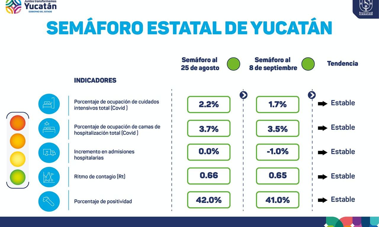 ESTOS SON LOS INDICADORES DEL SEMÁFORO ESTATAL DE YUCATÁN ESTE JUEVES 8 DE SEPTIEMBRE