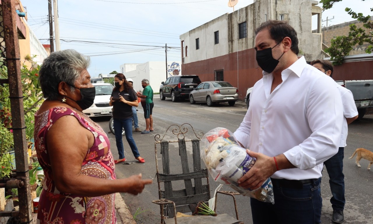Progreso, a 13 de septiembre. – “Estoy muy agradecida con el alcalde Julián Zacarías Curi, pues su ayuda llega en un momento en que realmente lo necesitaba, pues por mi edad, es muy complicado realizar determinado tipo de trabajos” indicó la señora Valentina Poot Tun, quien esta mañana recibió un apoyo alimenticio de manos del primer edil.