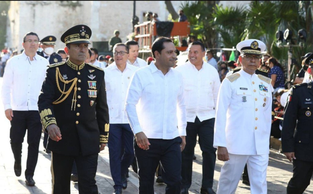 Mérida, Yucatán, 16 de septiembre de 2022.- El Gobernador Mauricio Vila Dosal encabezó esta mañana desde el Palacio de Gobierno el desfile cívico-militar conmemorativo al 16 de septiembre en el que participaron miles de estudiantes, elementos de los cuerpos de seguridad y de las Fuerzas Armadas, a cuyo paso durante el derrotero las familias yucatecas expresaron su fervor patrio.