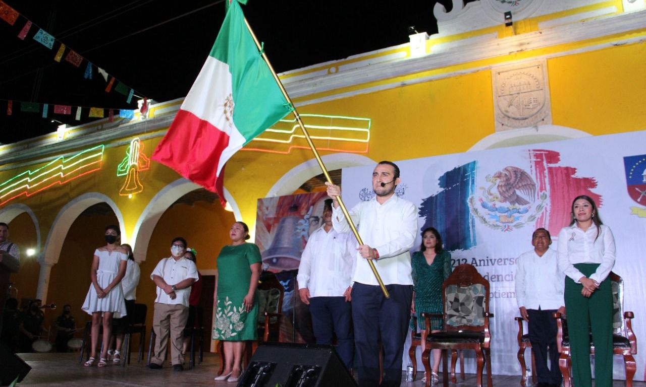 Umán, Yucatán a 16 de septiembre de 2022.- Celebrando el orgullo de ser mexicanos, el Presidente Municipal de Umán, Dr. Gaspar Ventura Cisneros Polanco encabezó el tradicional grito en conmemoración a los 212 Aniversario de la Independencia de México.