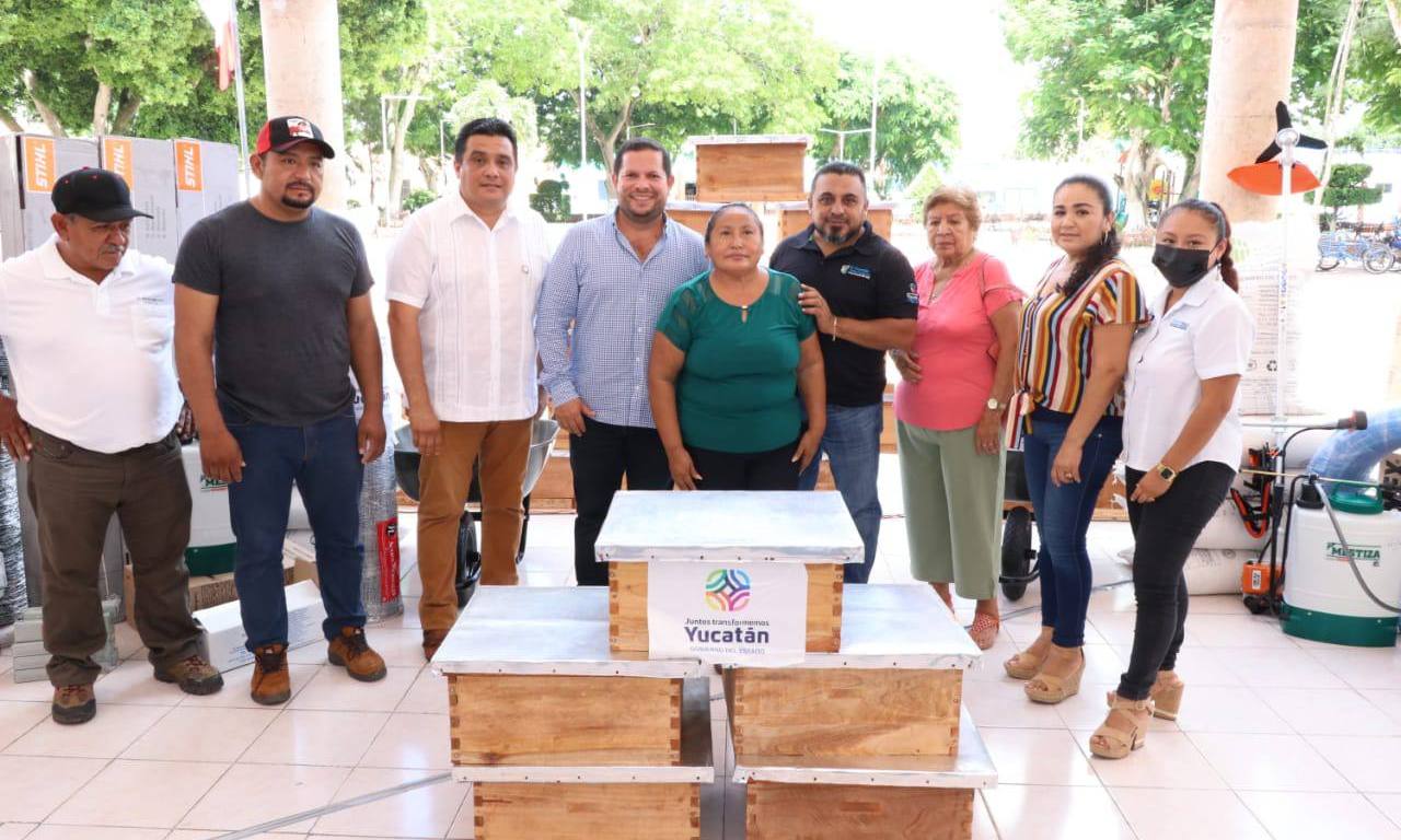 El titular de la Secretaría de Desarrollo Rural (Seder), Jorge Díaz Loeza, supervisó la distribución de insumos, herramientas y equipo de trabajo a productores de Cenotillo, como azúcar, implementos apícolas, motosierras, mangueras para sistemas de riego e hidráulicas, alambres de púas, carretillas, bombas aspersoras, tinacos, triciclos, motobombas y malla borreguera.