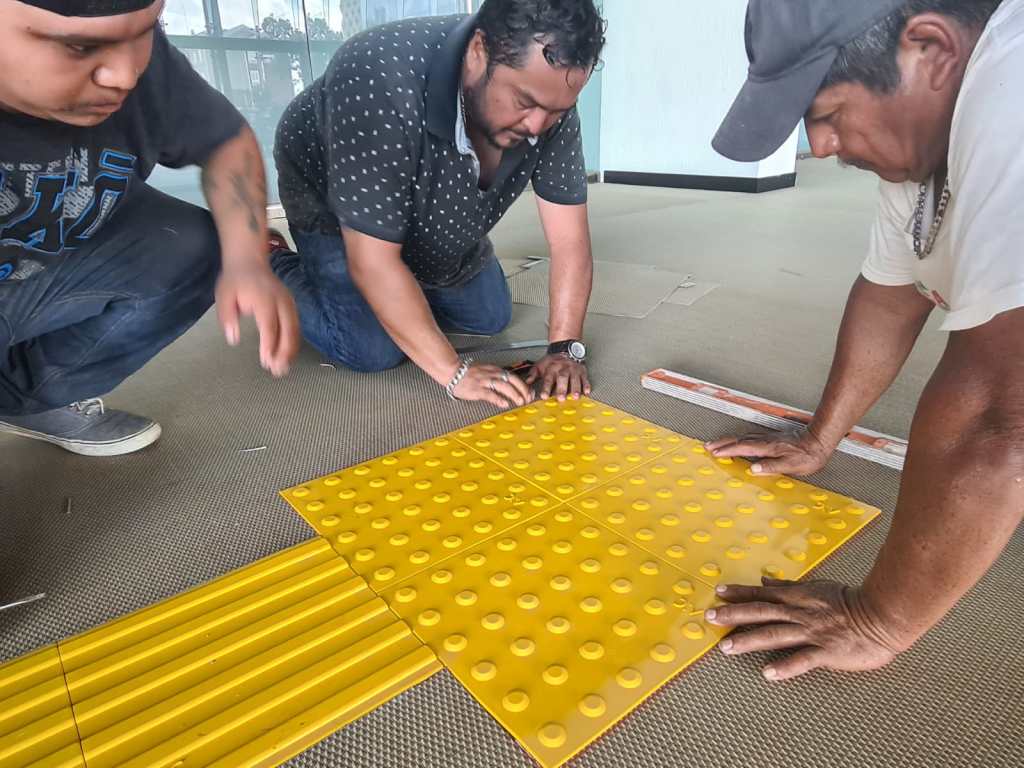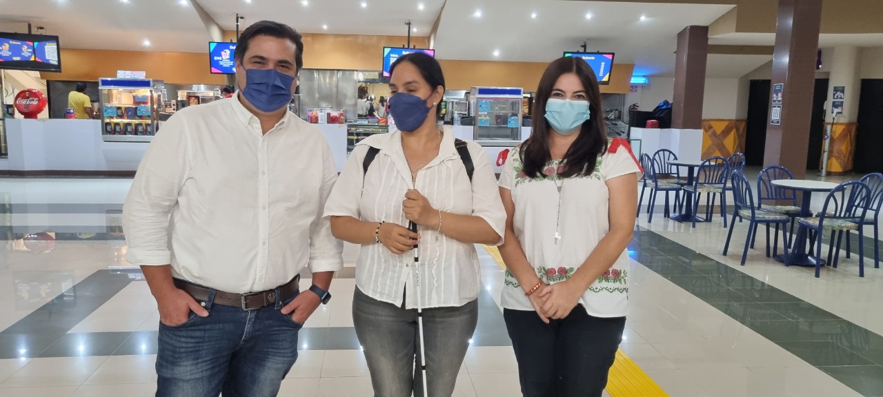 Mérida, Yucatán, a 22 de septiembre de 2022. Como un paso más hacia la Accesibilidad Universal proyectada en los Cines Siglo XXI, que administra Cultur, esta semana se inició la instalación de 150 metros lineales de una “ruta podotáctil” en el interior del edificio, que es una guía para que las personas con discapacidad visual puedan acudir a estos sitos de esparcimiento con la mayor autonomía posible.